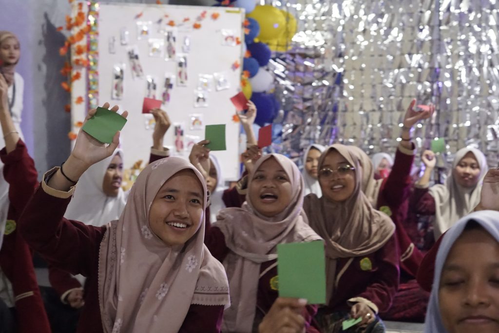Pada babak pertama, peserta bergantian menjawab pertanyaan bertema ‘suka-suka panitia’. Tak sedikit yang di luar nalar, sebagian menguji ingatan, sementara yang lain justru mengundang tawa. Kertas hijau dan merah dibagikan pada babak kedua. Hijau berarti A, merah berarti B. Setiap kelompok menjawab soal pilihan ganda dengan mengangkat kertas masing-masing, menguji chemistry sekaligus menantang kejujuran.